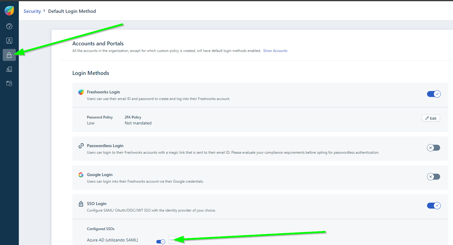 Si en este punto no tenemos activado el login por Freshworks, lo activamos. Necesitamos tener un método de acceso alternativo por seguridad.