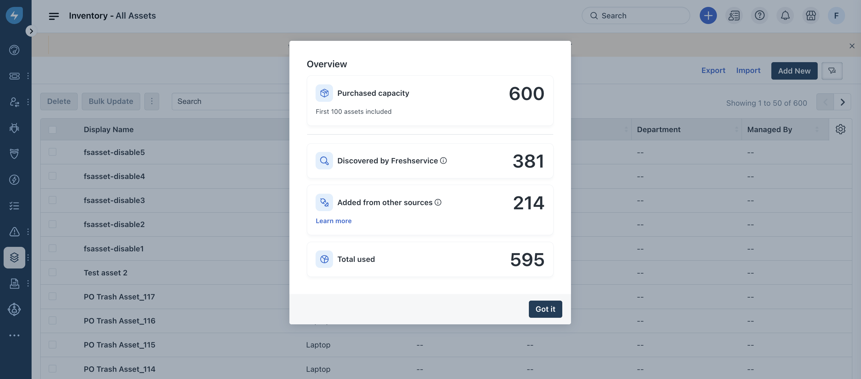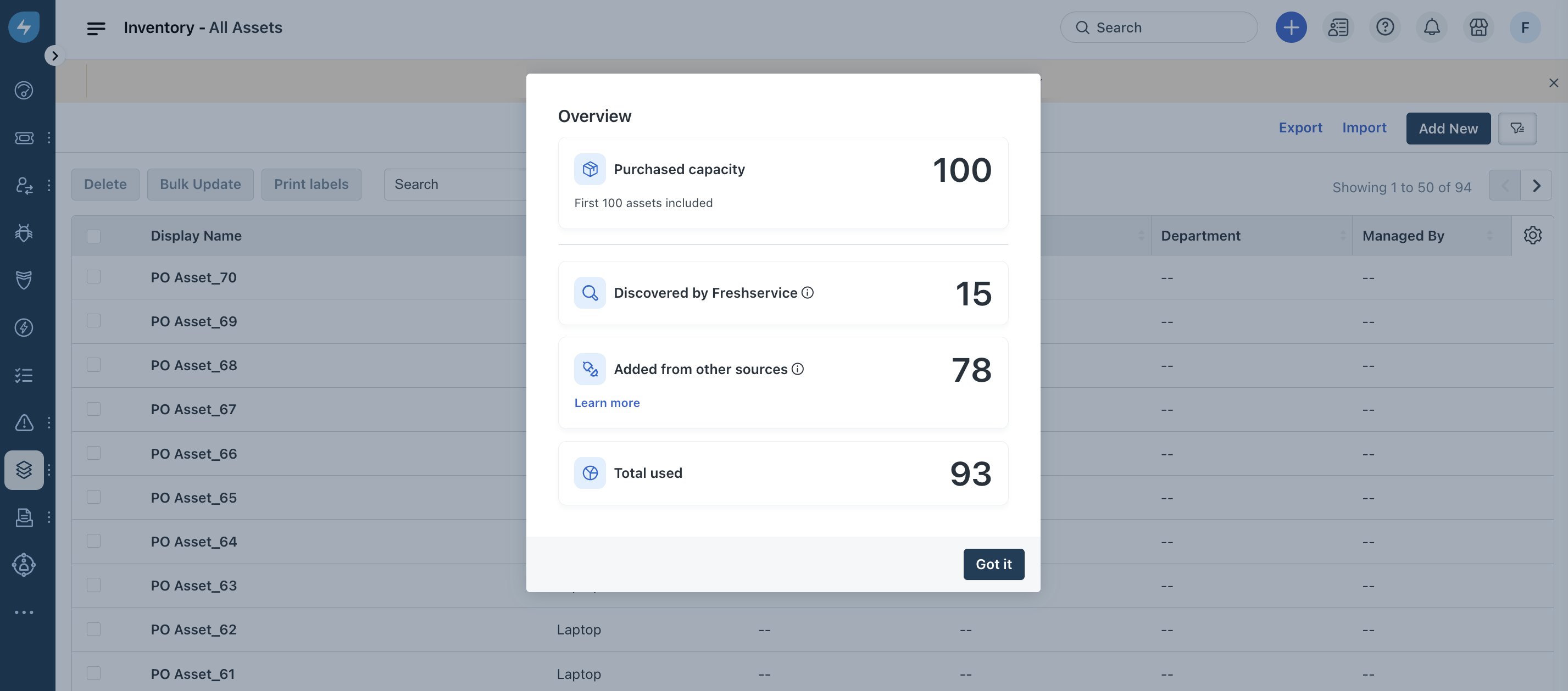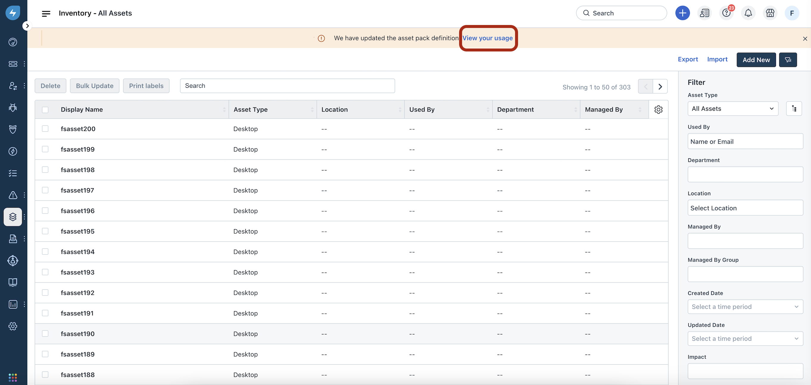 Activos gestionados - Managed Asset Pack (add-on) en Freshservice