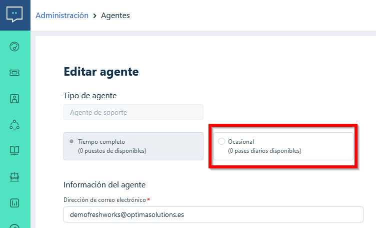 Si necesitamos eliminar o desactivar un usuario/agente en Freshdesk, pero no queremos perder su histórico lo recomendable es convertirlo a "agente ocasional".
