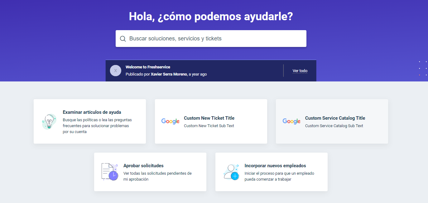 IMPORTANTE: Este cambio que vamos a realizar está solamente disponible para las versiones Growth, Pro y Enterprise de Freshservice.