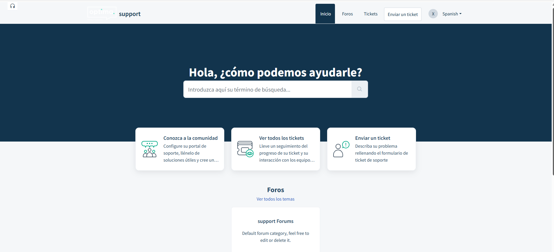 El portal de soporte, por defecto, tiene esta apariencia: